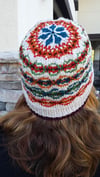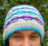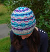 Sizes given are finished hat circumferences (age/size bands are for guidance only - always take a head measurement before choosing a size). Choose a size approx 2in/5cm smaller than your own head to fit as modelled. Stranded knitting is not as stretchy as ribbing or plain stockinette; if you fall between sizes you may prefer to alter your gauge marginally to give you a little more room or choose the larger size.