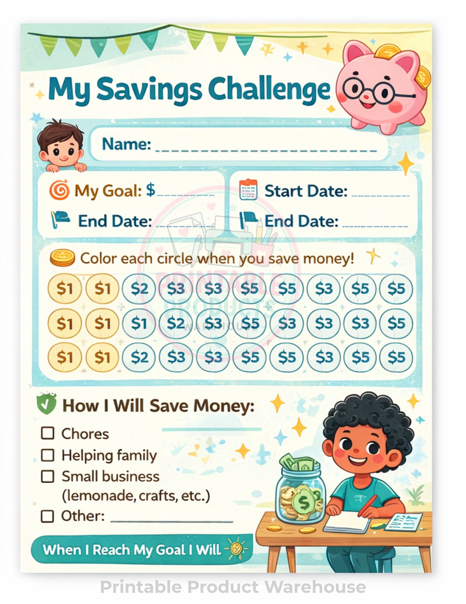 This easy-to-use savings tracker helps children set goals, stay motivated, and build strong money habits while watching their progress grow.