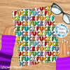 Rows of colorful chunky Fucks on white.
