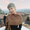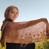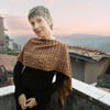 Nodo Infinito has a “half donut” shape which is worked sideways with short rows. The gentle curve obtained makes the shawl very easy to wear, because it stays put on your shoulder.