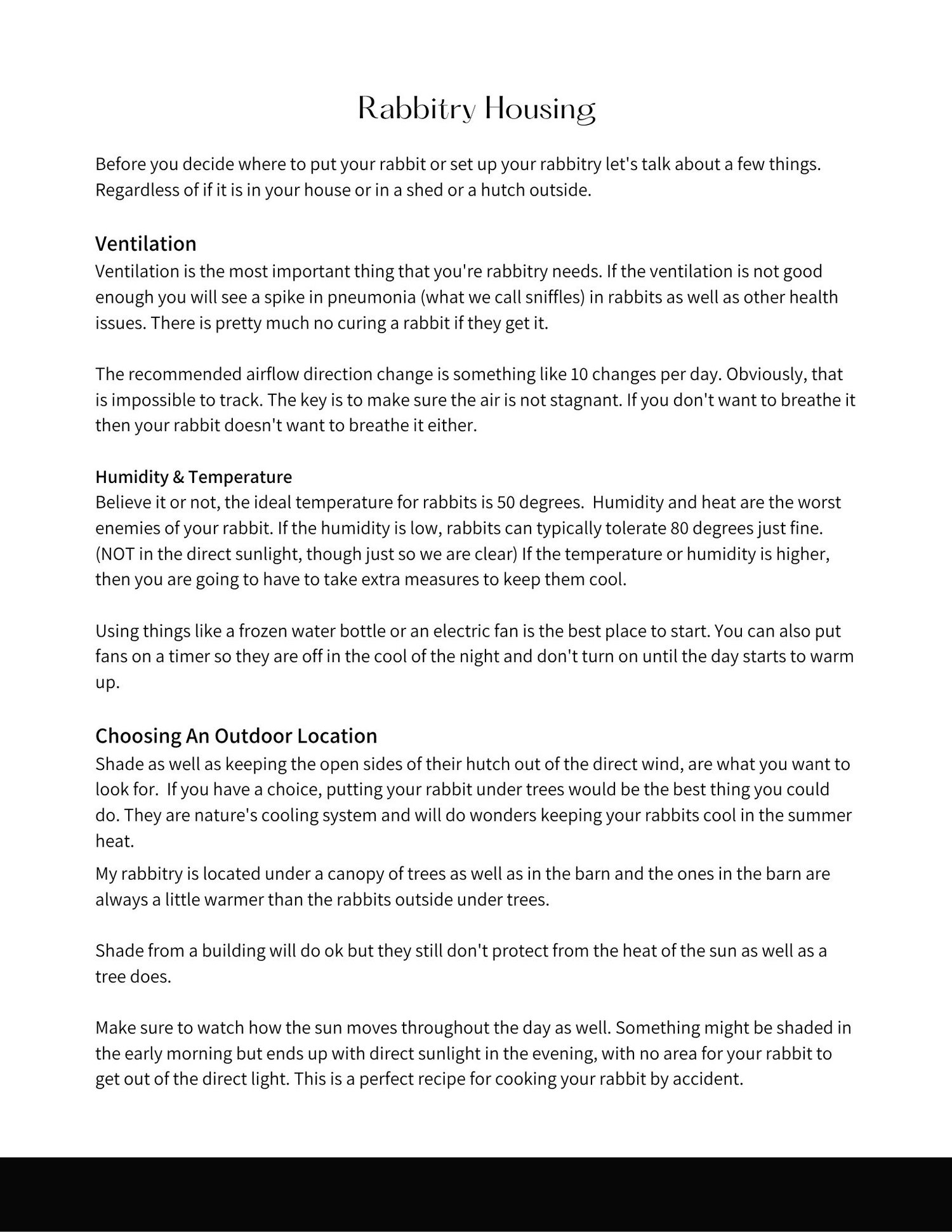 This guide is meant to give you the information you need to care for a rabbit or your own herd if you want practical no no-nonsense kind of care information.