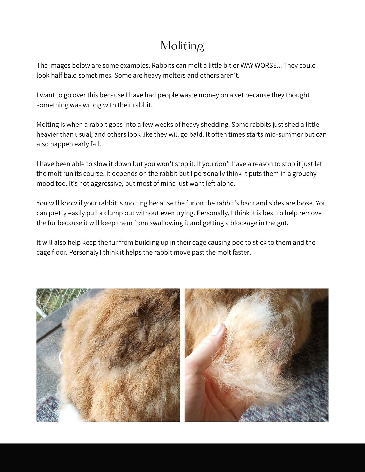 This does not cover kit (baby rabbits) care or breeding.