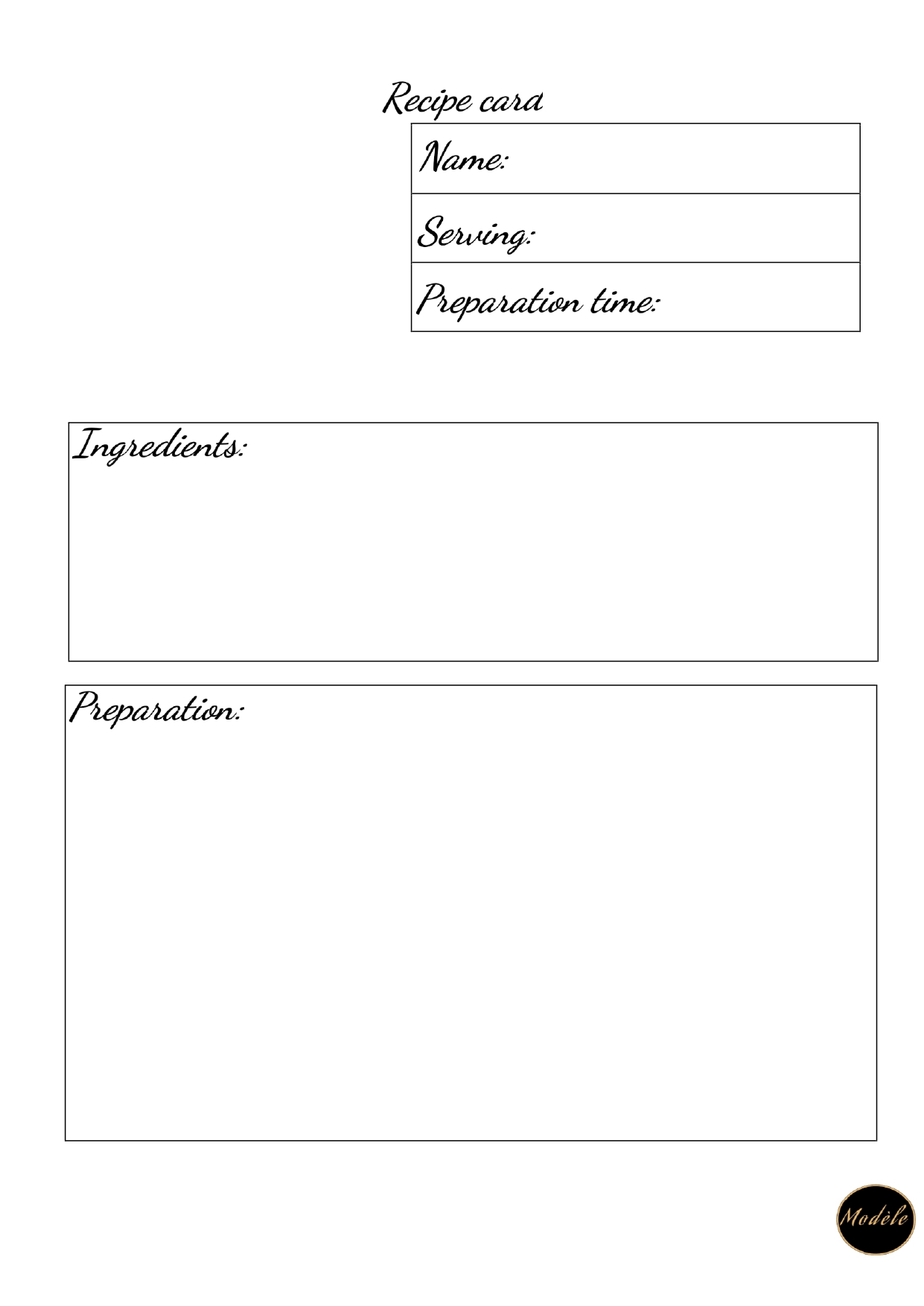 Fiche pour écrire toute ses recettes. En Anglais avec le logo. En PDF donc utilisable pour Word et Goodnote et d'autre application qu'ils acceptent les PDF.