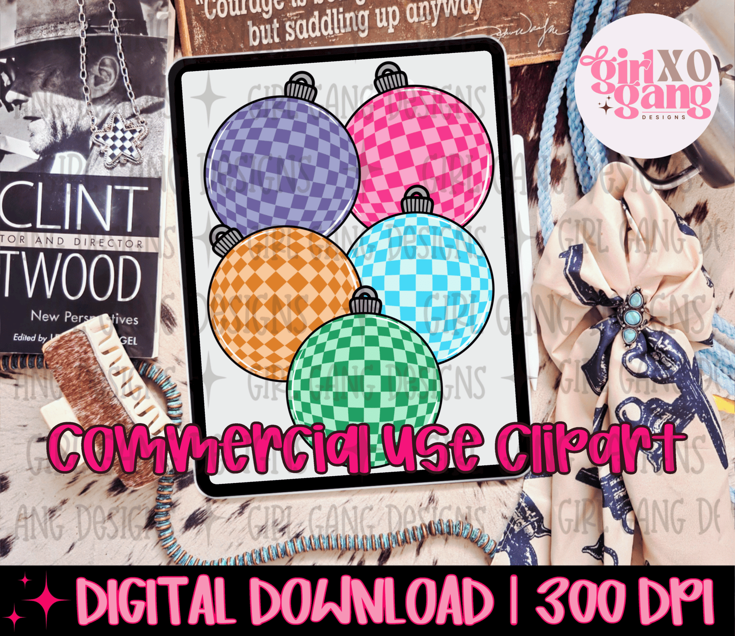 Hand drawn Christmas ornament clipart bundle png elements , checkered Christmas ornament clipart png files