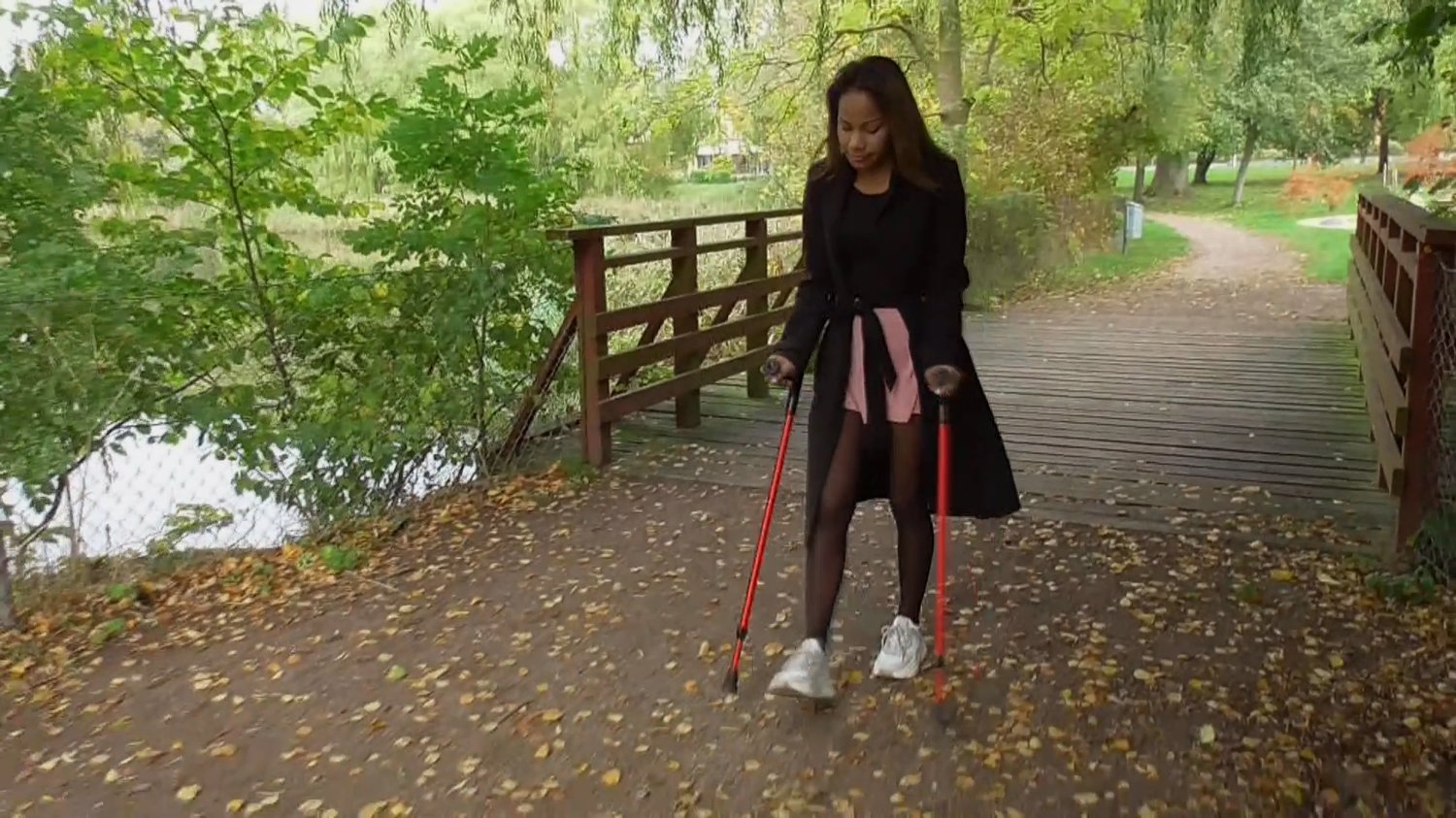 Elina is finally free from her cast but that doesn't mean she's completely healthy again.Now she has to train her muscles and the easiest way for her is to walk around with the help of her crutches.However, Elina is worried that her injury will get worse when she feels pain so she decides to crutching nwb again