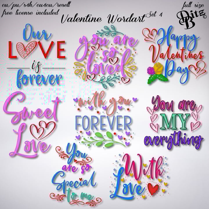Valentine Wordart Set 4