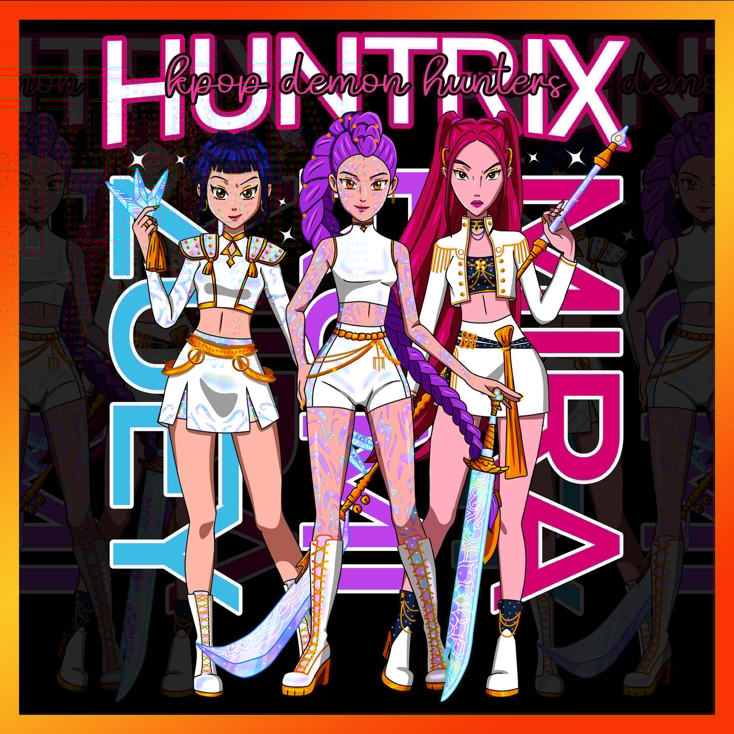 Step into the futuristic world of Huntrix: KPOP Demon Hunters, where fashion, anime, and urban fantasy collide! This exclusive artwork is inspired by vibrant K-pop aesthetics and bold anime vibes, making it perfect for fans, creators, and merchandising designers who want something unique and eye-catching.