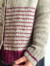 El cárdigan de la foto corresponde al Tamaño 3, con un pecho de 40”/100 cm y 10 cm de margen positivo.
