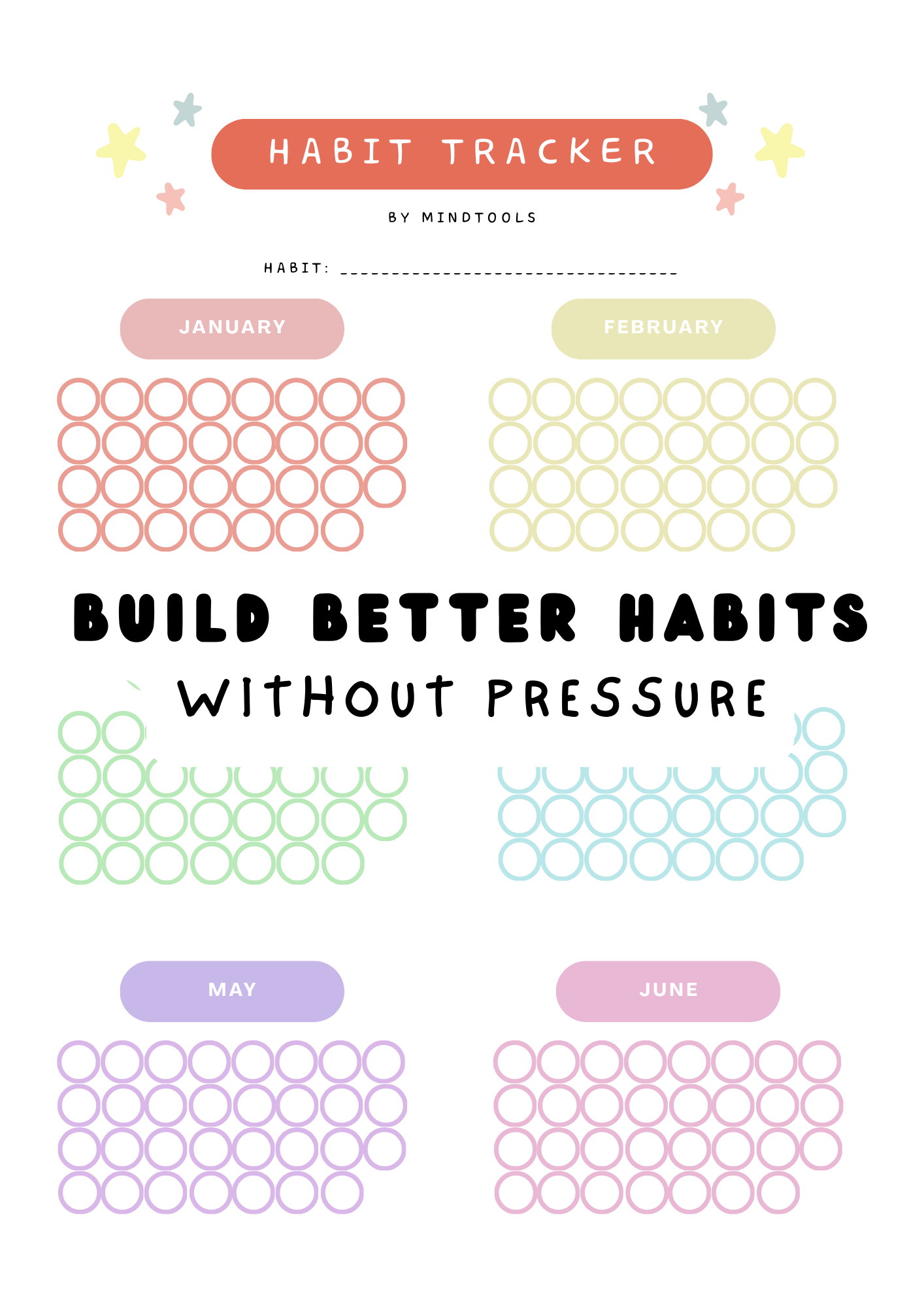 A simple habit tracker designed to help you reset your mind and build healthy routines without pressure.