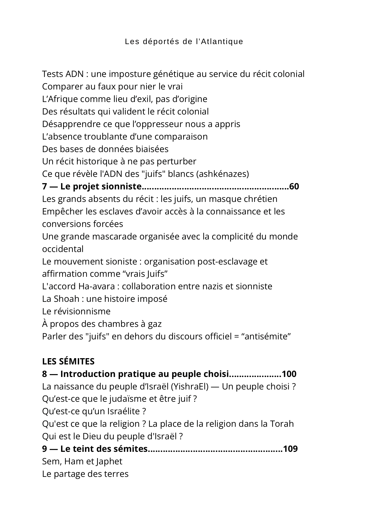 Une partie de l’ouvrage s’attaque à l’implication juive dans la traite négrière, un sujet largement occulté dans les récits officiels. L’ouvrage aborde également sans concession le rôle actif de certains Africains dans la capture et la vente de captifs, contredisant la version selon laquelle ils n’auraient été que des victimes passives.