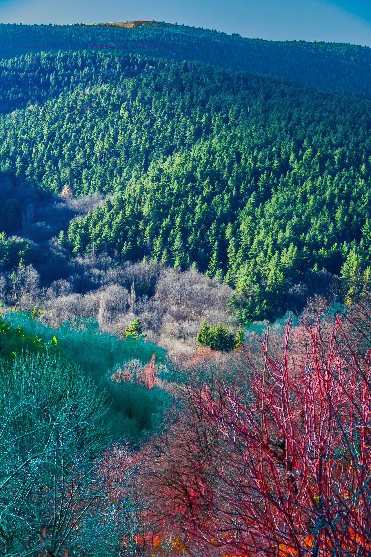 View of the forest from the village of Fornells de la Muntanya.