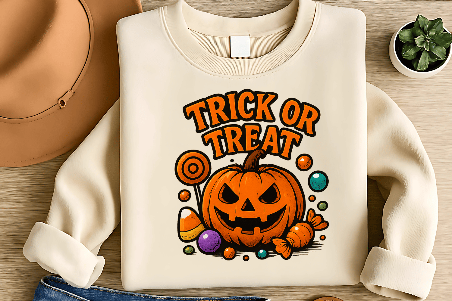 Unleash a whirlwind of Halloween fun with this Pumpkin Candy Chaos Sublimation PNG! Featuring a lively “Trick or Treat” Jack-O’-Lantern surrounded by playful candy, this design captures the perfect mix of spooky and festive vibes—ideal for apparel, gifts, and cheerful décor.