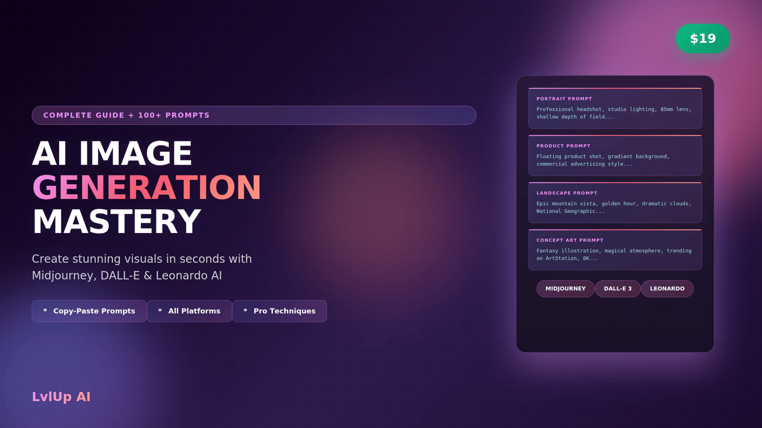 AI Image Generation Mastery: 100+ Prompts for Midjourney, DALL-E & Leonardo AI