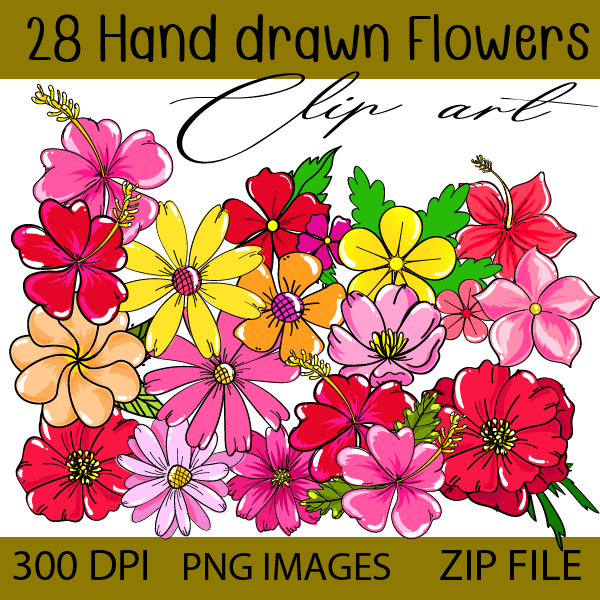 - This pack includes 28 flower illustrations created from my original hand-painted artwork