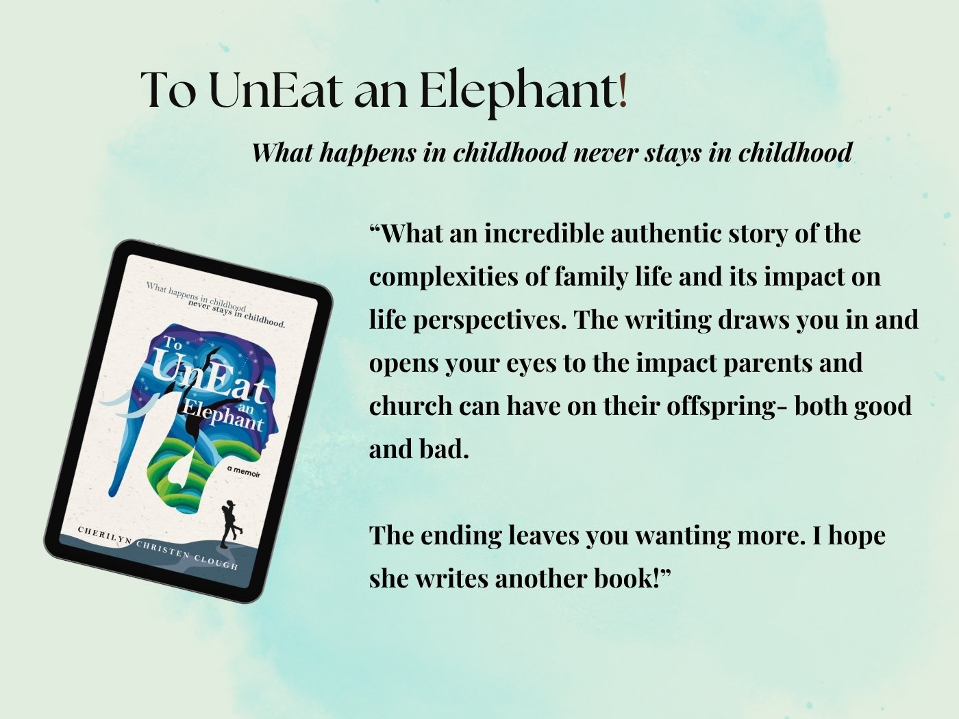 📘 To UnEat an Elephant, the long-awaited sequel, uncovers how the scars of her past followed her into adulthood—and how she began the slow, courageous journey to healing.