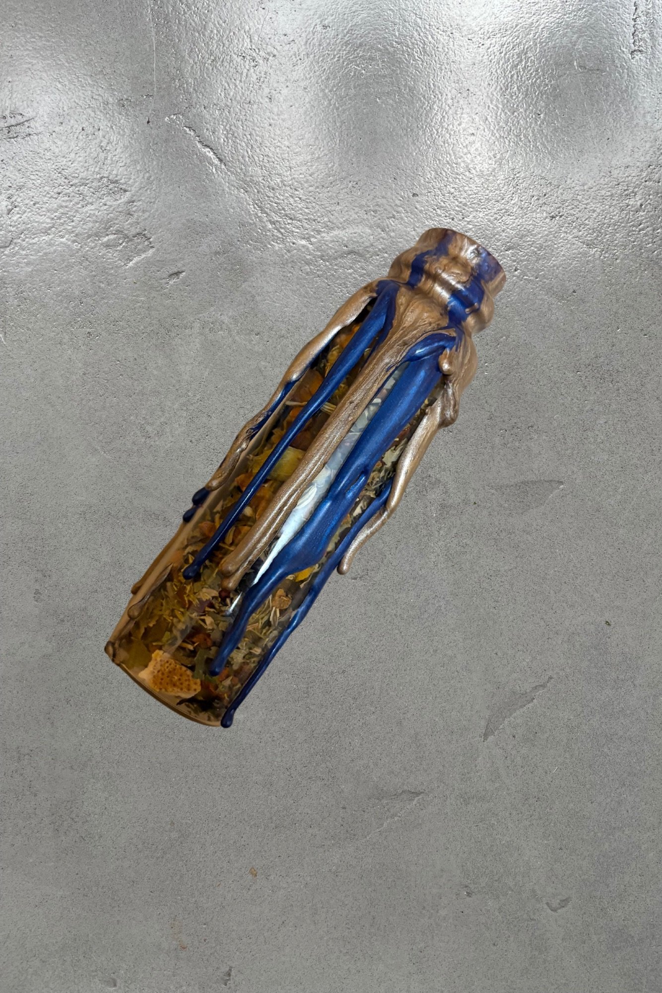 Bestandteile: Glas, Kork, Wachs, Kräuter, Edelsteine
