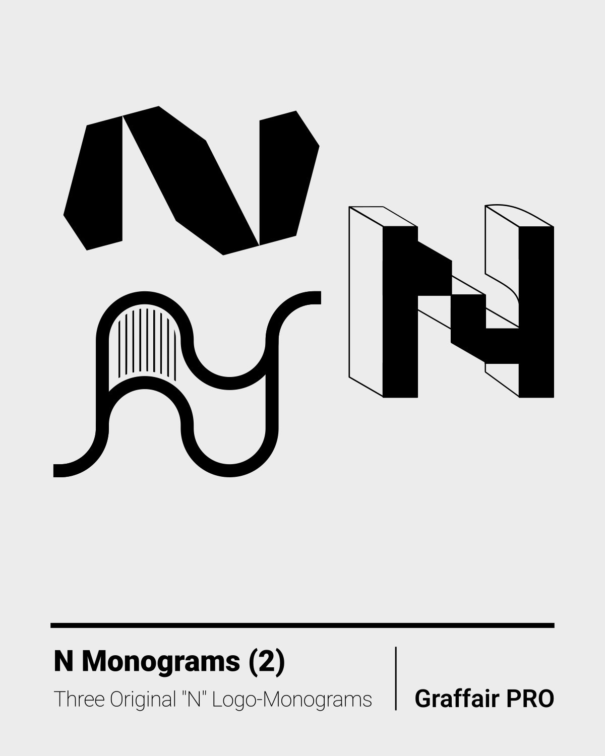 N Monograms (2): The 2nd set of three original "N" logo monograms, included in the "1050 SVG Monograms" super bundle, which also features an Index catalog.