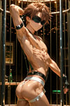 男性ショーダンサーをテーマに、ジョックストラップとサスペンダーを着せて、ポールと鳥かごをテーマに、キャラクターの魅力を存分に表現しました。