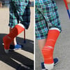 A VERY YOUNG BOY WITH A RED BANDAGED SLC SPLINT.