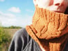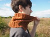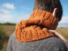 Meandres is a cowl worked in the round from the bottom up. It starts with a border made of ribbing and small cables, then a more complex traveling cable pattern is worked in the middle and it ends with the same border.