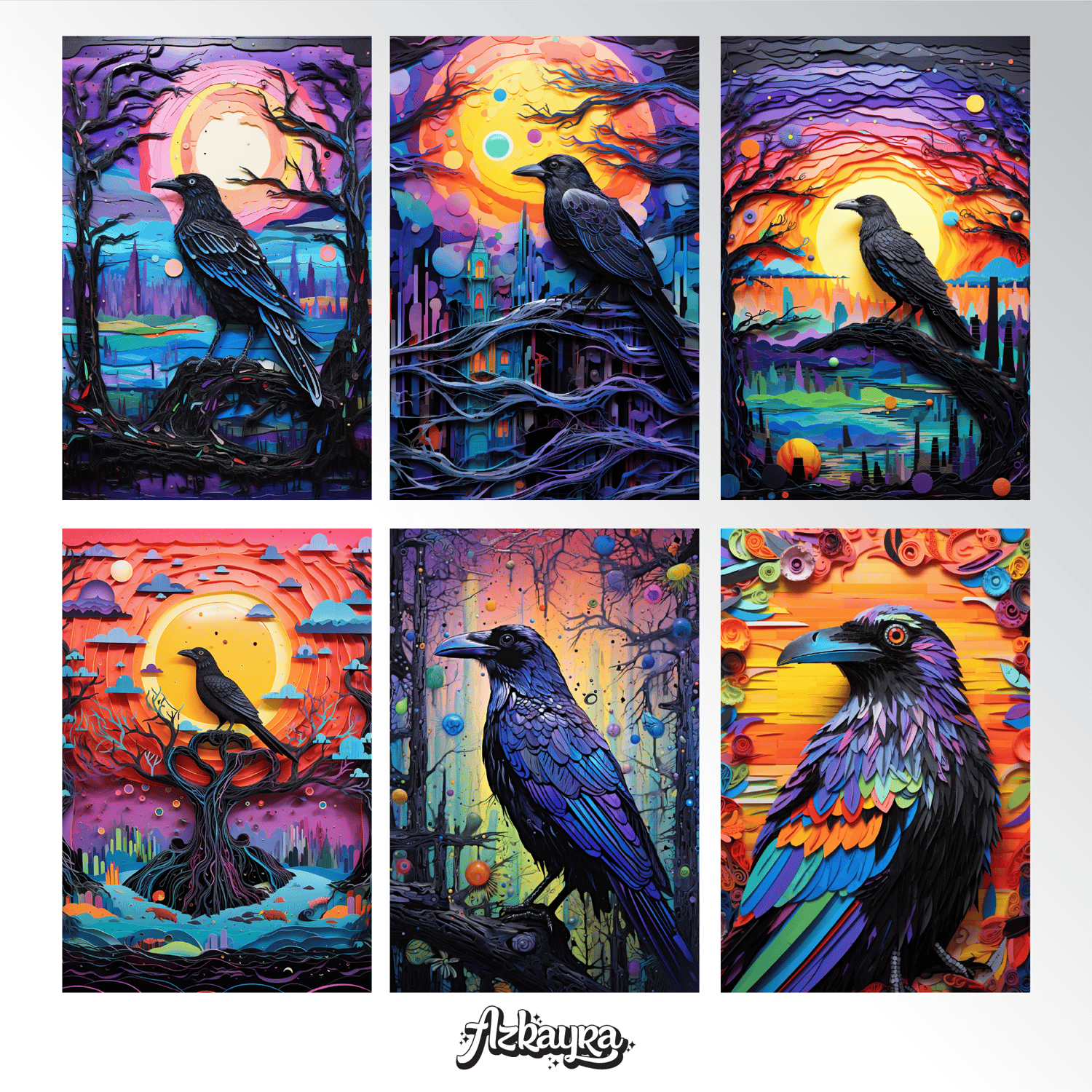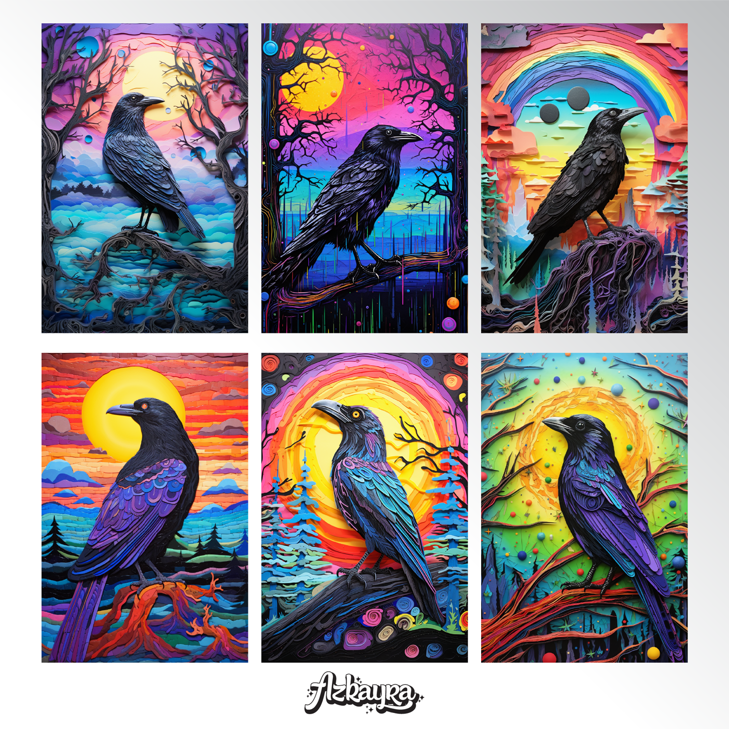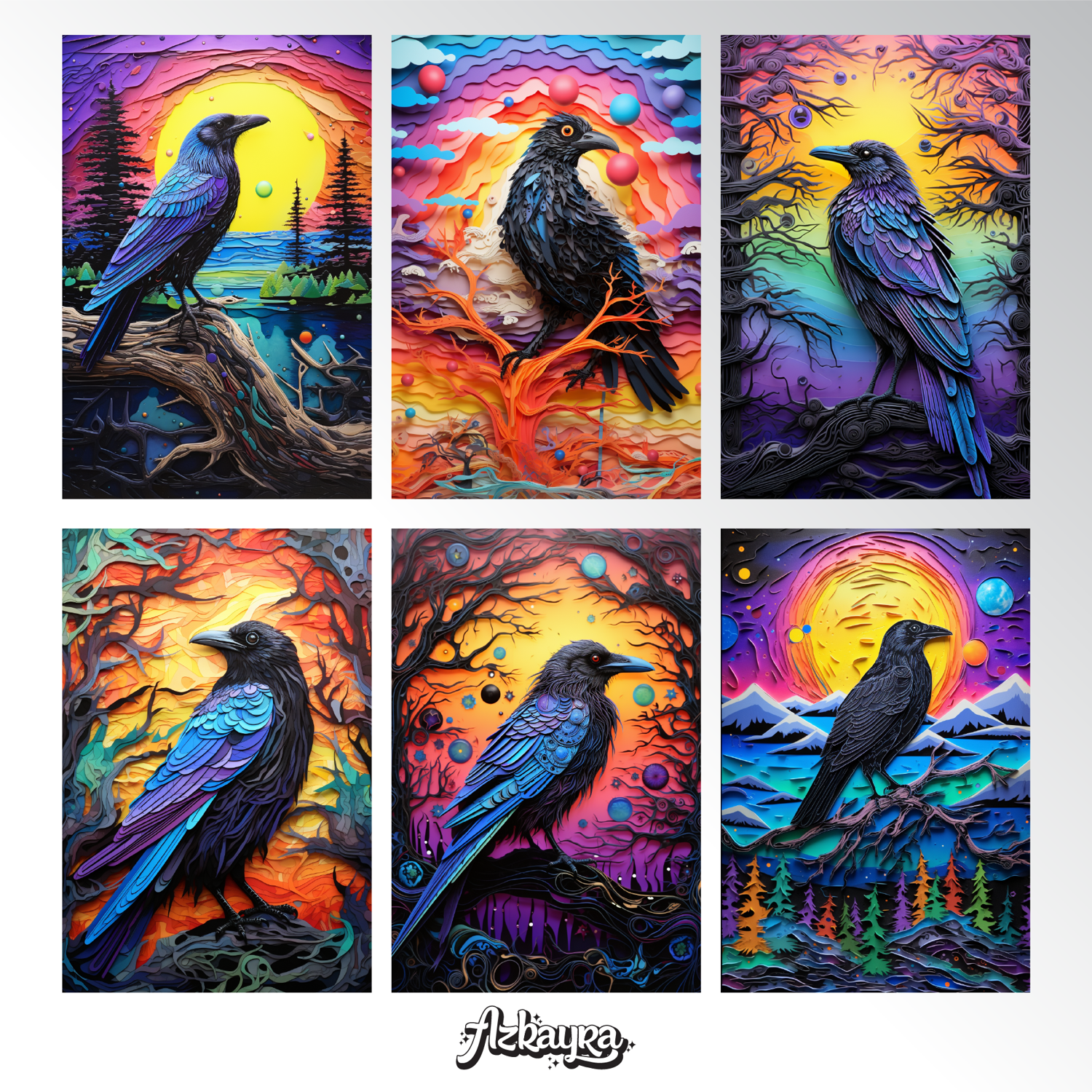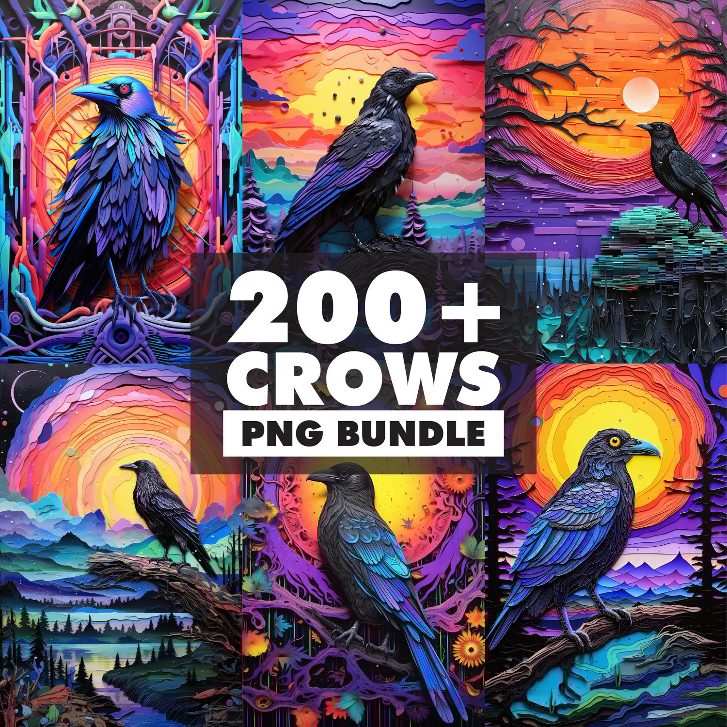 Elevate your creative projects with our captivating "Crow Digital Art Bundle." Immerse yourself in a world of enchanting gothic designs, featuring intricate layered illustrations of black ravens against a mystical backdrop. Each of the 200+ files in this bundle is meticulously crafted using cutting-edge AI technology, resulting in stunning 3D-like effects that leap off the page.