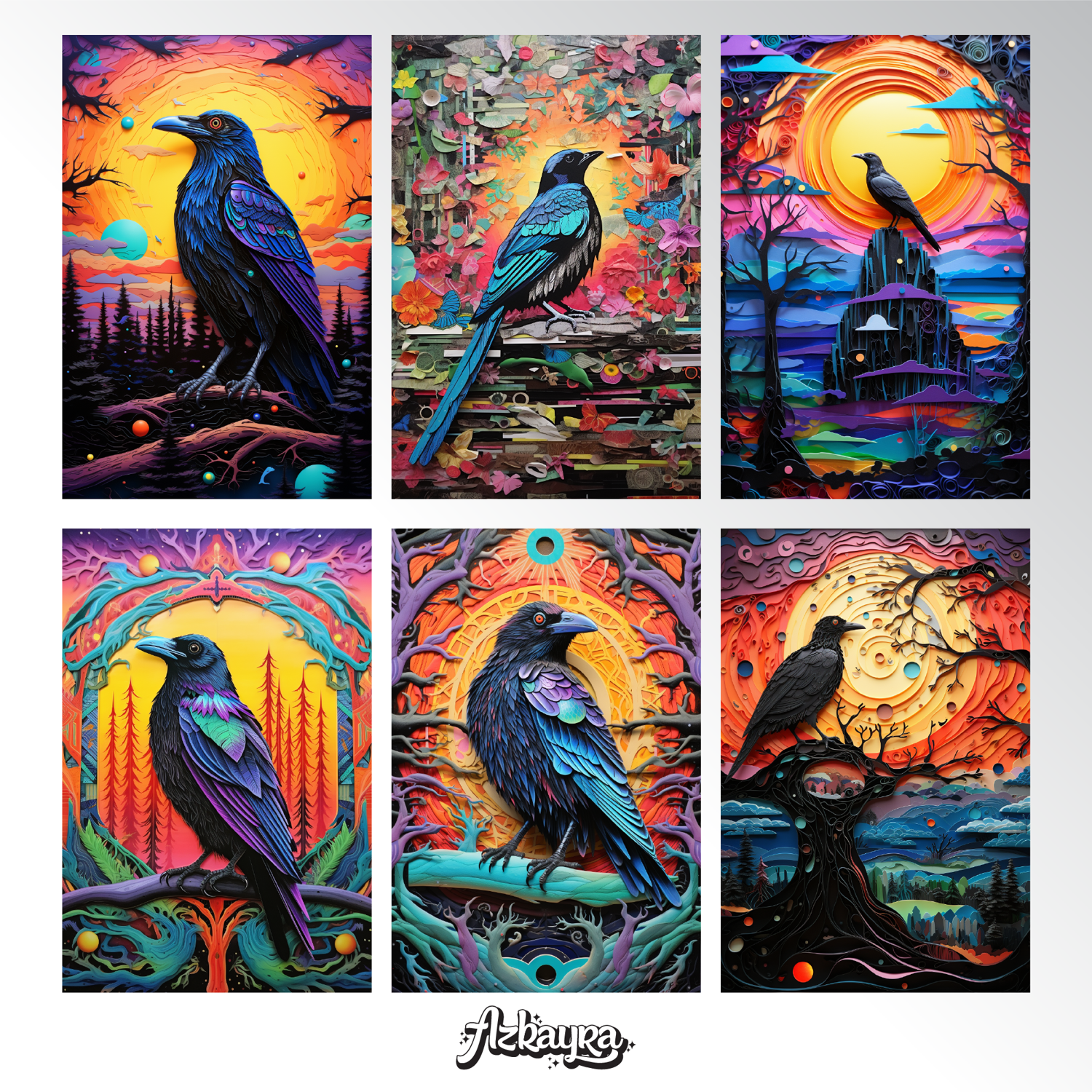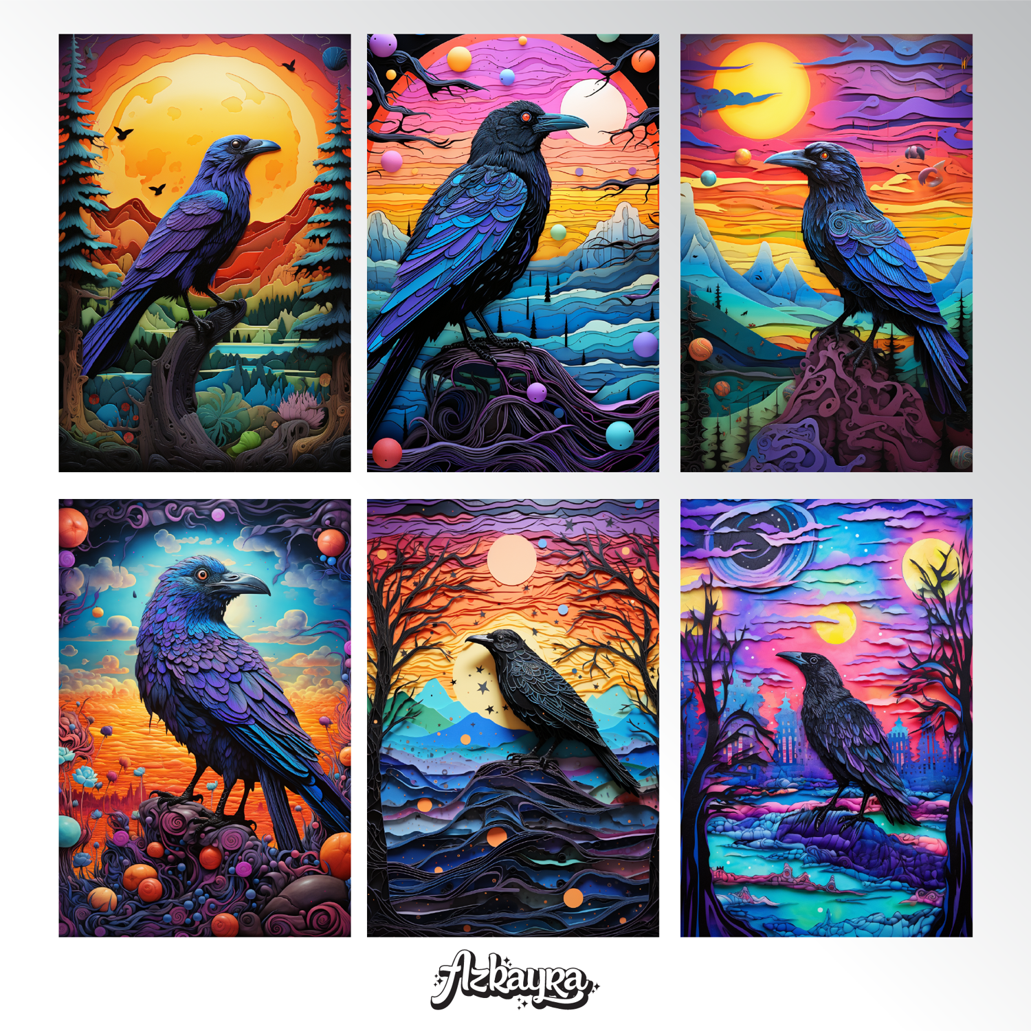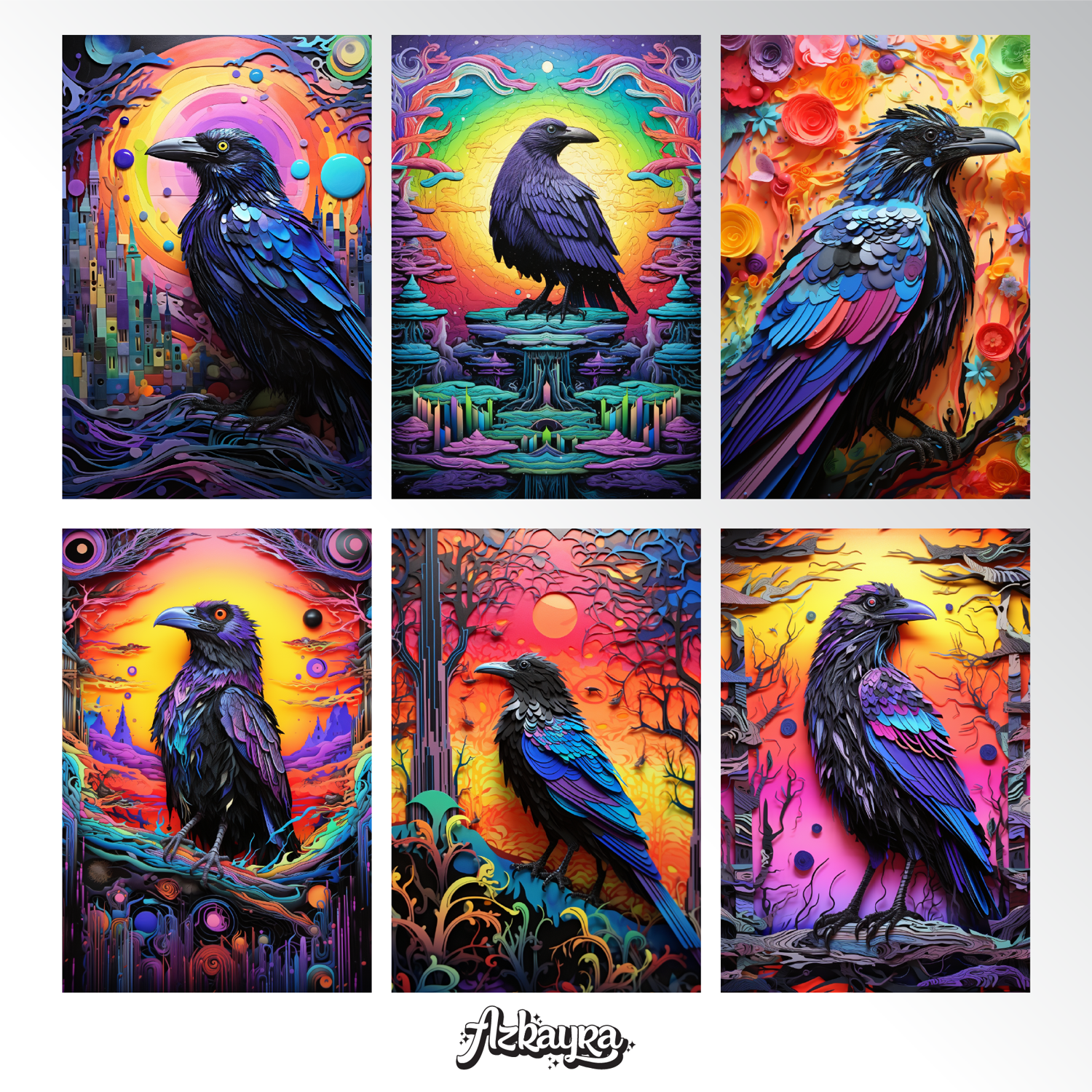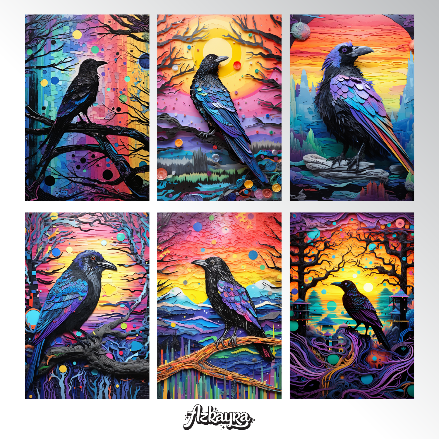 Elevate your creative projects with our captivating "Crow Digital Art Bundle." Immerse yourself in a world of enchanting gothic designs, featuring intricate layered illustrations of black ravens against a mystical backdrop. Each of the 200+ files in this bundle is meticulously crafted using cutting-edge AI technology, resulting in stunning 3D-like effects that leap off the page.