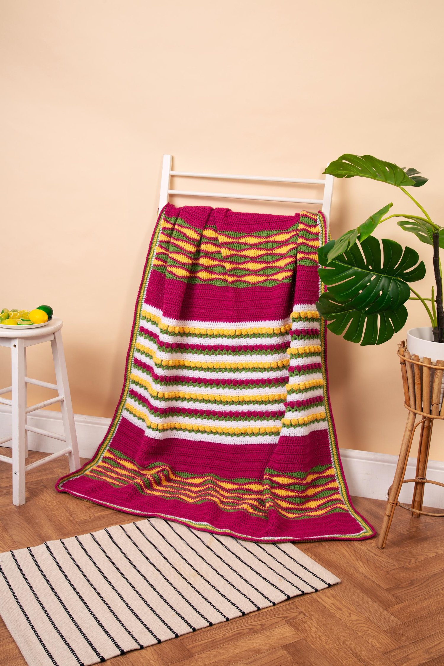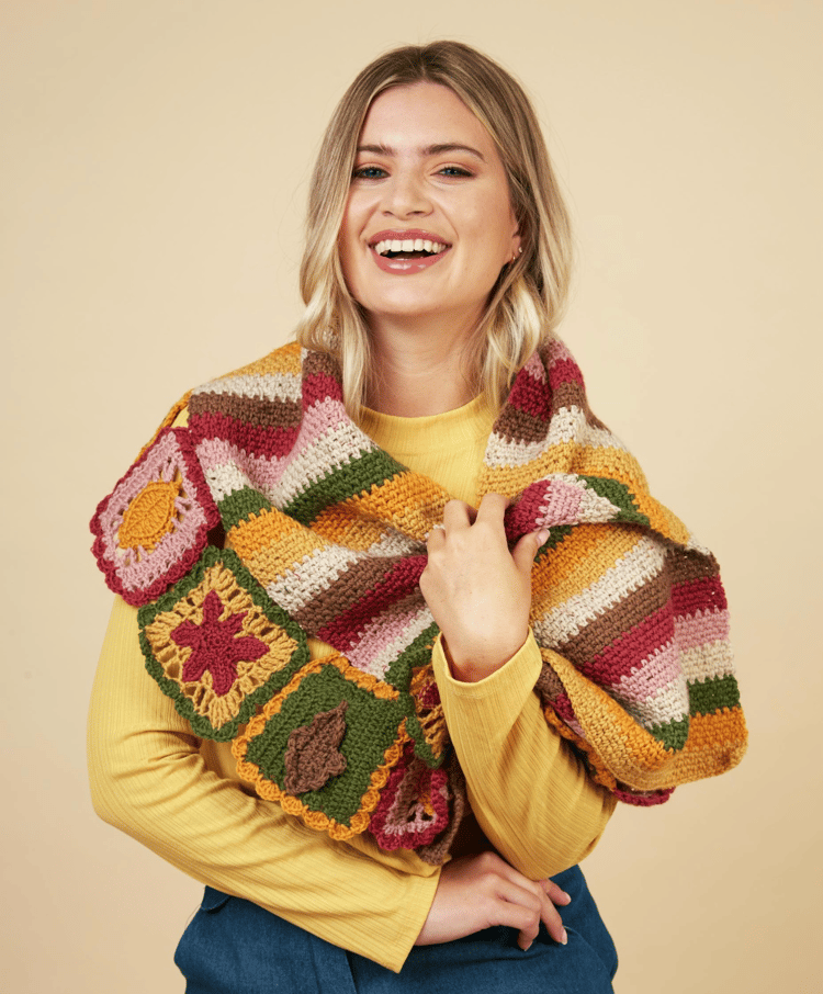 I think we all have memories from our childhood that seem incidental to some but have great meaning to us. For me, packets of refresher sweets bring back a vivid memory of those little trips to the local sweet shop with my big sister, pennies clutched tightly in hand. I always reached for the green ones, while my sister claimed the pink. It made sharing easy—and special. These simple moments inspired my latest creation, the Zesty Lapghan, which is a true trip down memory lane, wrapped up in colour and comfort.