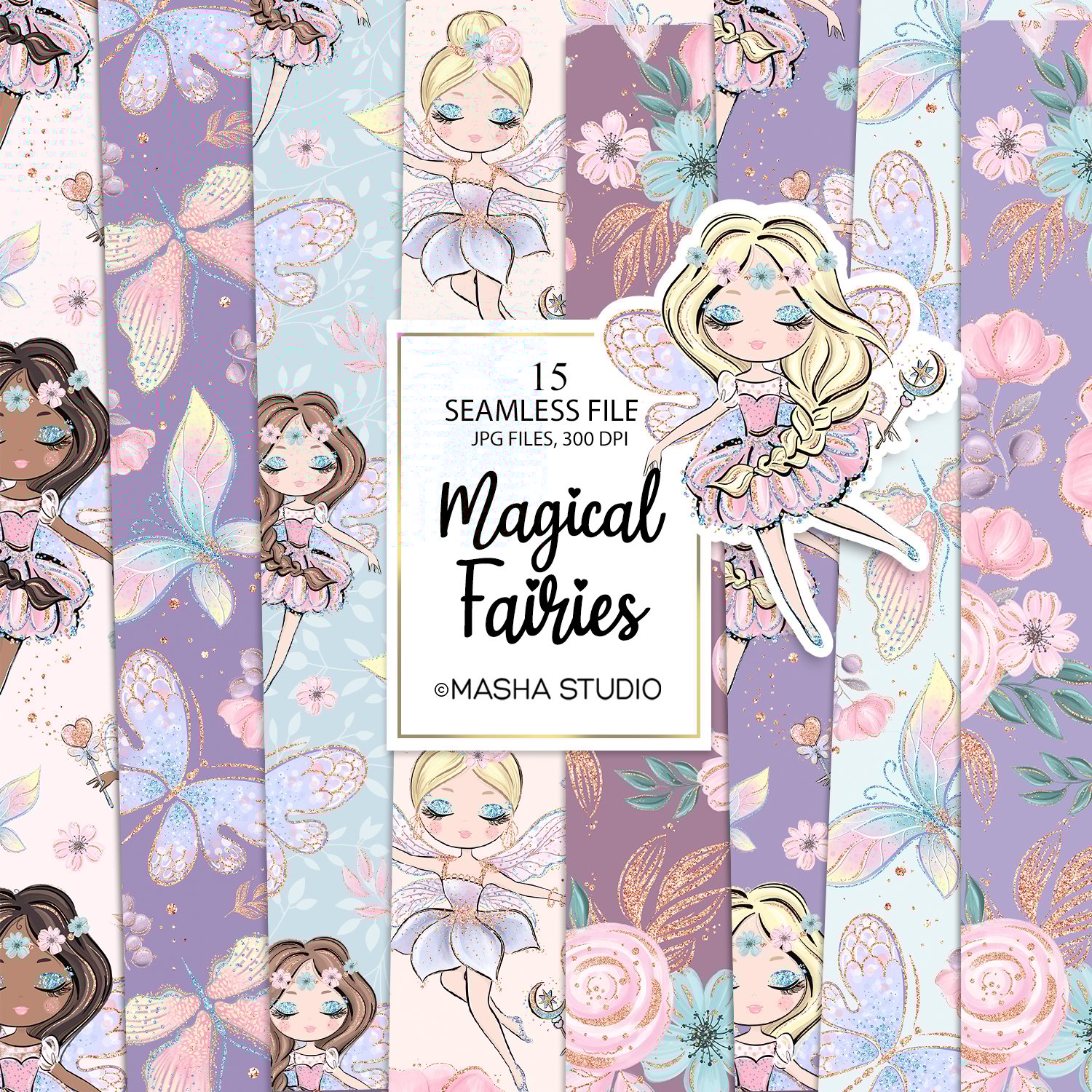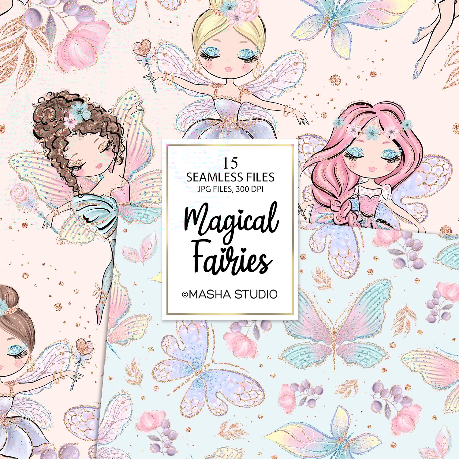Magical Fairies Hand Drawn Seamless Digital Papers