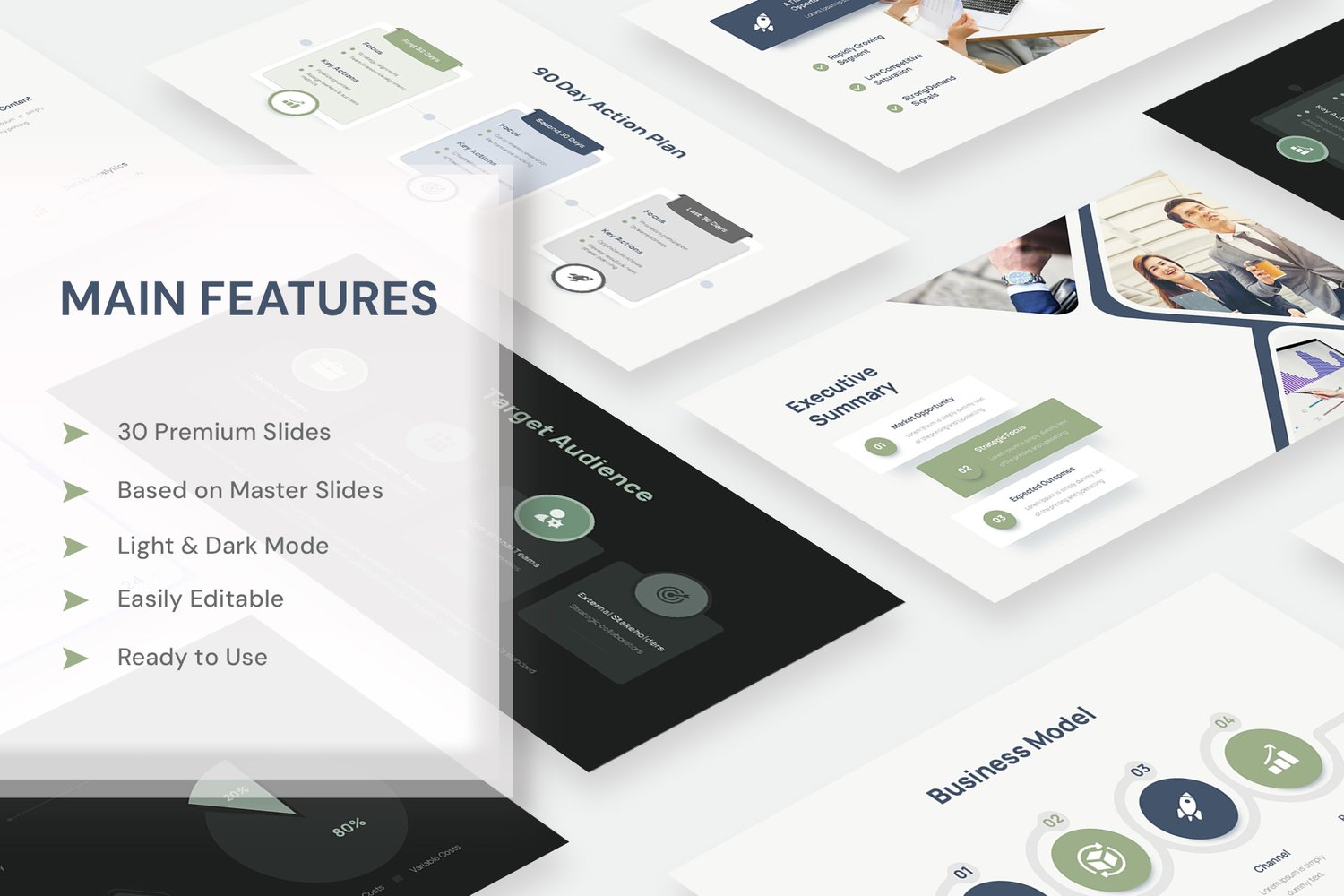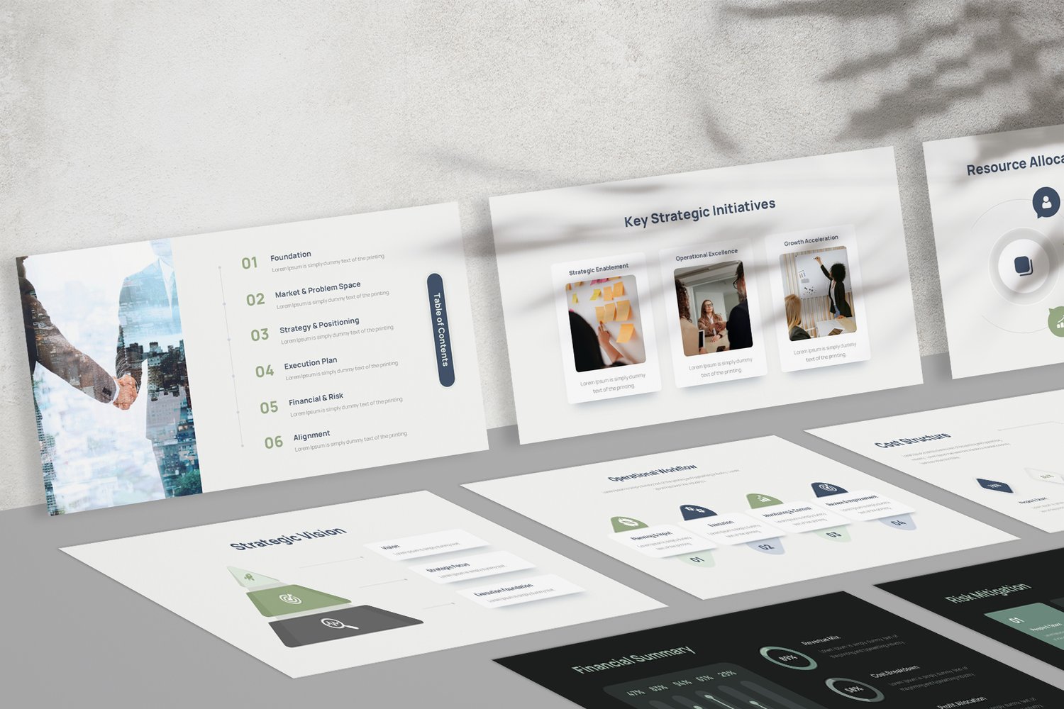 Built to communicate business vision, market analysis, execution roadmap, financial projections, and risk assessment in a clean, executive-ready format.