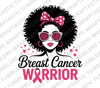 Breast Cancer Warrior PNG Pink Ribbon Afro Woman Shirt Design | Awareness Sublimation | October Support Digital Download | Afro Art