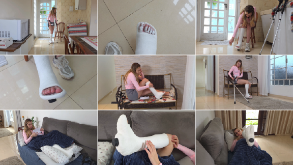 Das Video beginnt damit, dass Julia nach Hause kommt. Sie geht auf Krücken, ohne ihren Fuß auf den Boden zu setzen. Sie trinkt etwas Wasser, zeigt ihre in Gips eingehüllten Zehen und reinigt sie dann vorsichtig. Danach setzt sie sich auf ein kleines Sofa, um die Textur des Gipses zu fühlen, und fährt mit den Händen darüber. Etwas erschöpft lehnt sie sich zurück, schaut ein Video auf YouTube und schläft ein. Als sie aufwacht, streicht sie mit den Händen über den Gips und denkt darüber nach, was sie als Nächstes tun wird.