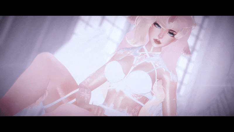 Outfits: Delight Outfit (Bra, Harness, Panties, Shoulder Lace, Lace garter, Skirt - all come off individually), Bodysuit, Sleeve Bodysuit with or without Heart Pasties, Comfy Outfit (Shorts, Tank Top, Jacket)