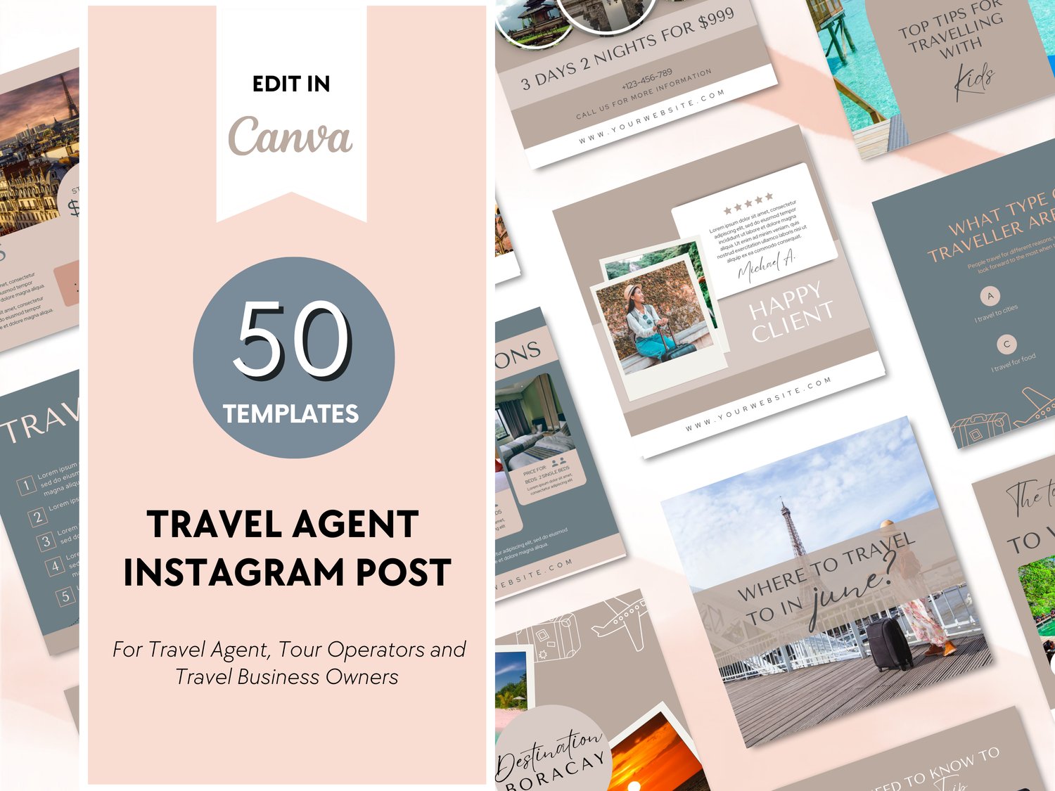 50 Editable Canva Templates for Travel Agent Instagram Posts