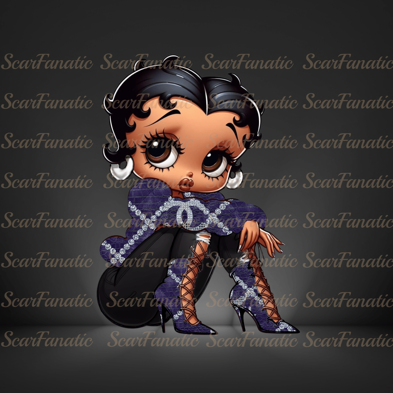 Black Betty Boop in purple snakeskin jacket and heels, black jeans, high heel boots, Sublimation, PNG, DTF, 300DPI, high resolution