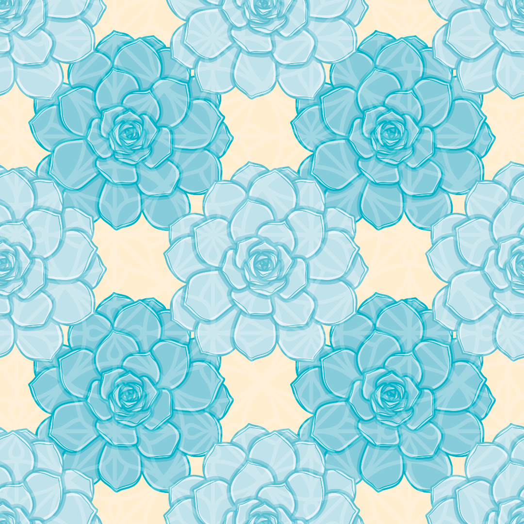Blue Rose Echeveria Seamless Vector Pattern