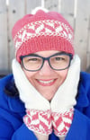 This hat and mitten pattern is worked in worsted-weight yarn and features an easy two-color stranded colorwork design as well as lots of Latvian Braids! Alternating the color choices between the two keeps things interesting (and uses almost all of the two skeins of yarn).