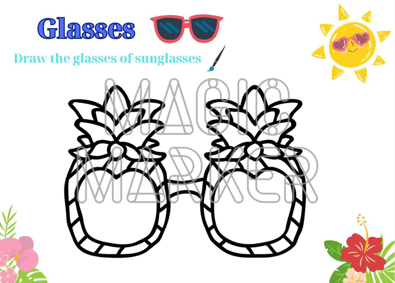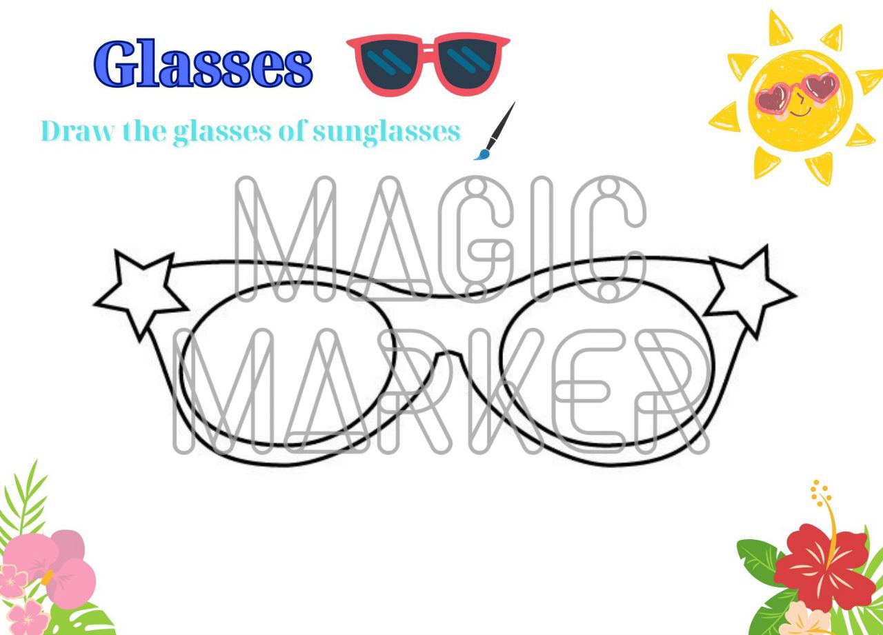 The child is asked to draw a thematic image associated with summer - sunglasses. The sheet contains one large image of sunglasses. Different types of coloring will help to develop hand-eye coordination, visual perception, and fine motor skills - skills needed in the pre-writing period to prepare the hand for writing. Interesting plots in the pictures will develop imagination, interest children and encourage them to work hard. The material was created to help preschool teachers, teachers of developmental and correctional centers, as well as parents - for interesting lessons and useful leisure.