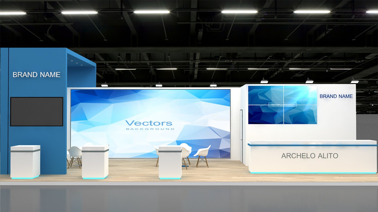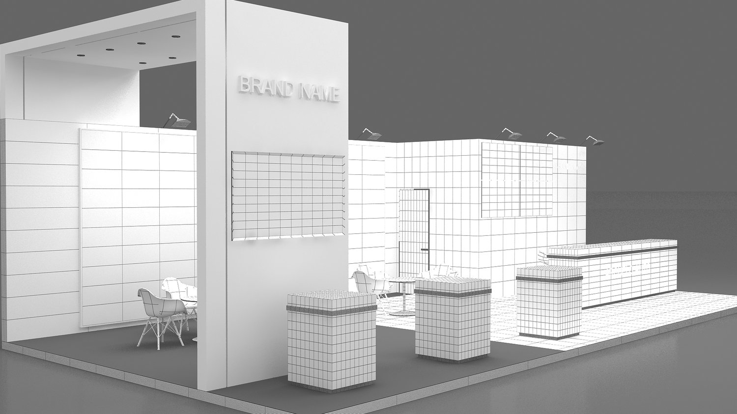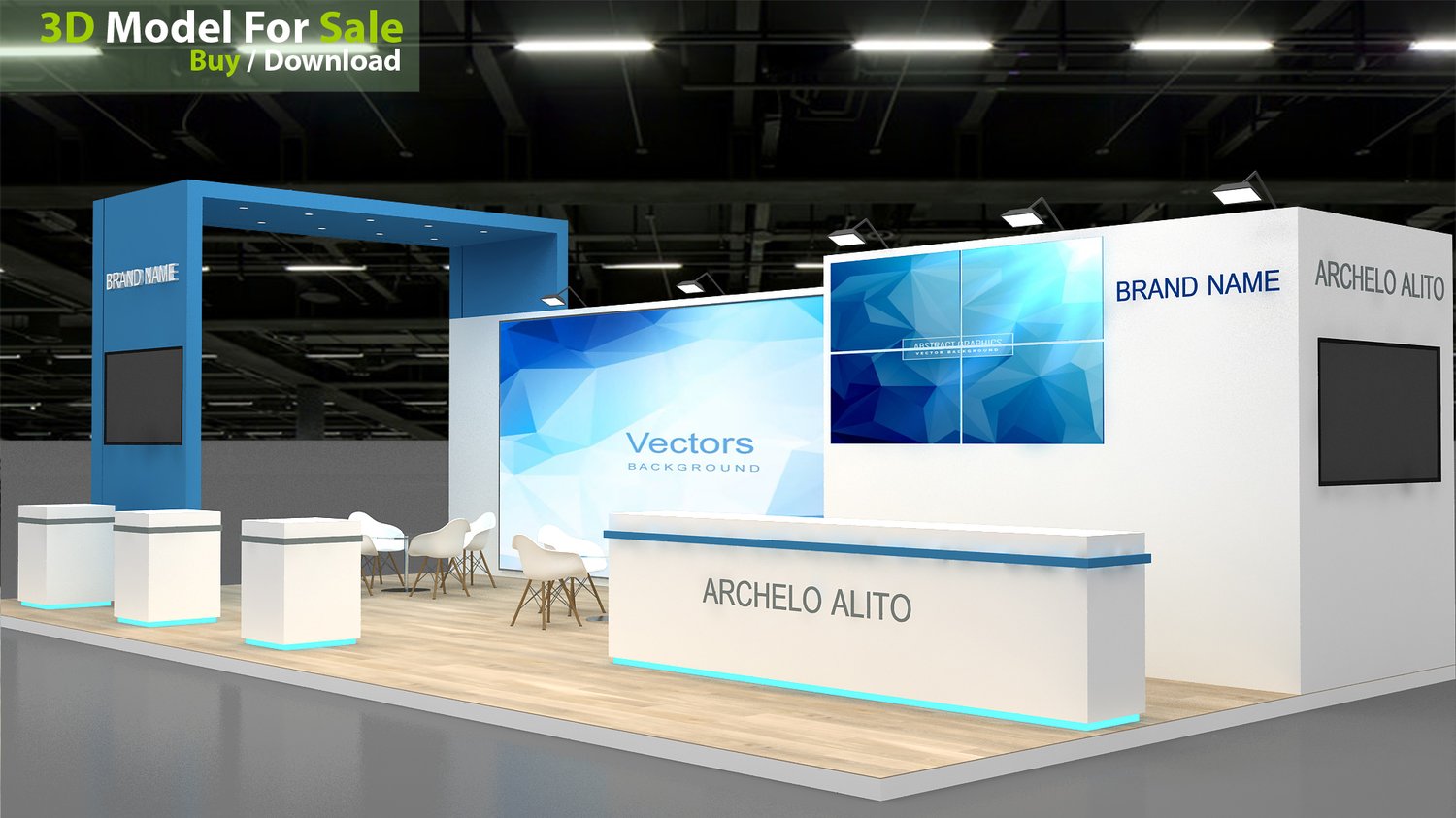 include design all necessary area in Exhibition and Booth Such as Vip and Storage and Counters and also Stand for productsFormat: 3DsMax (all version from 2016) / FBX /OBJ/