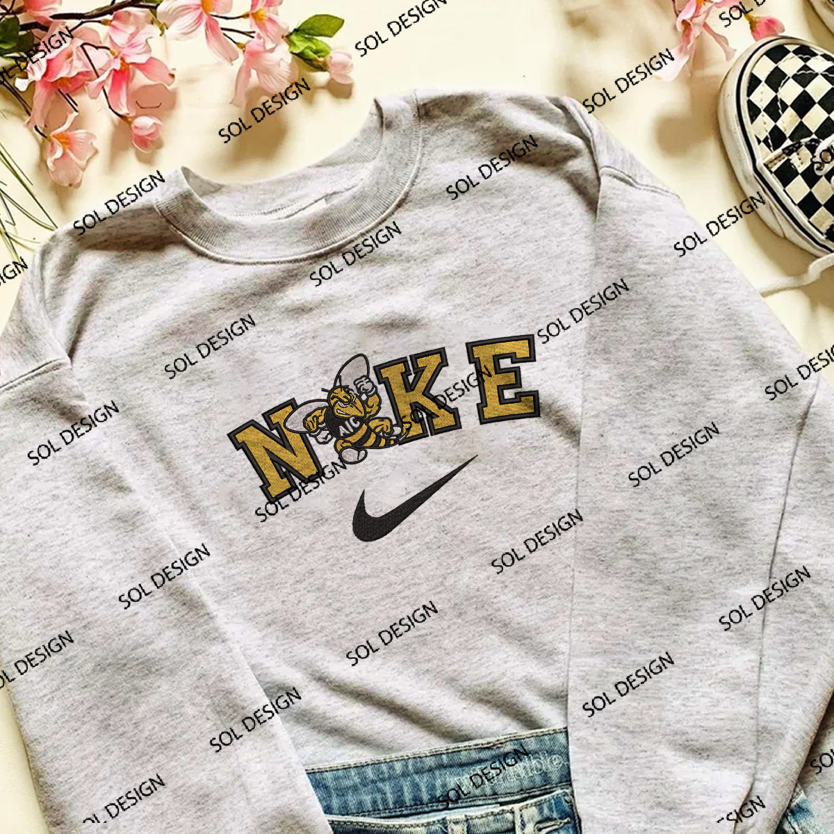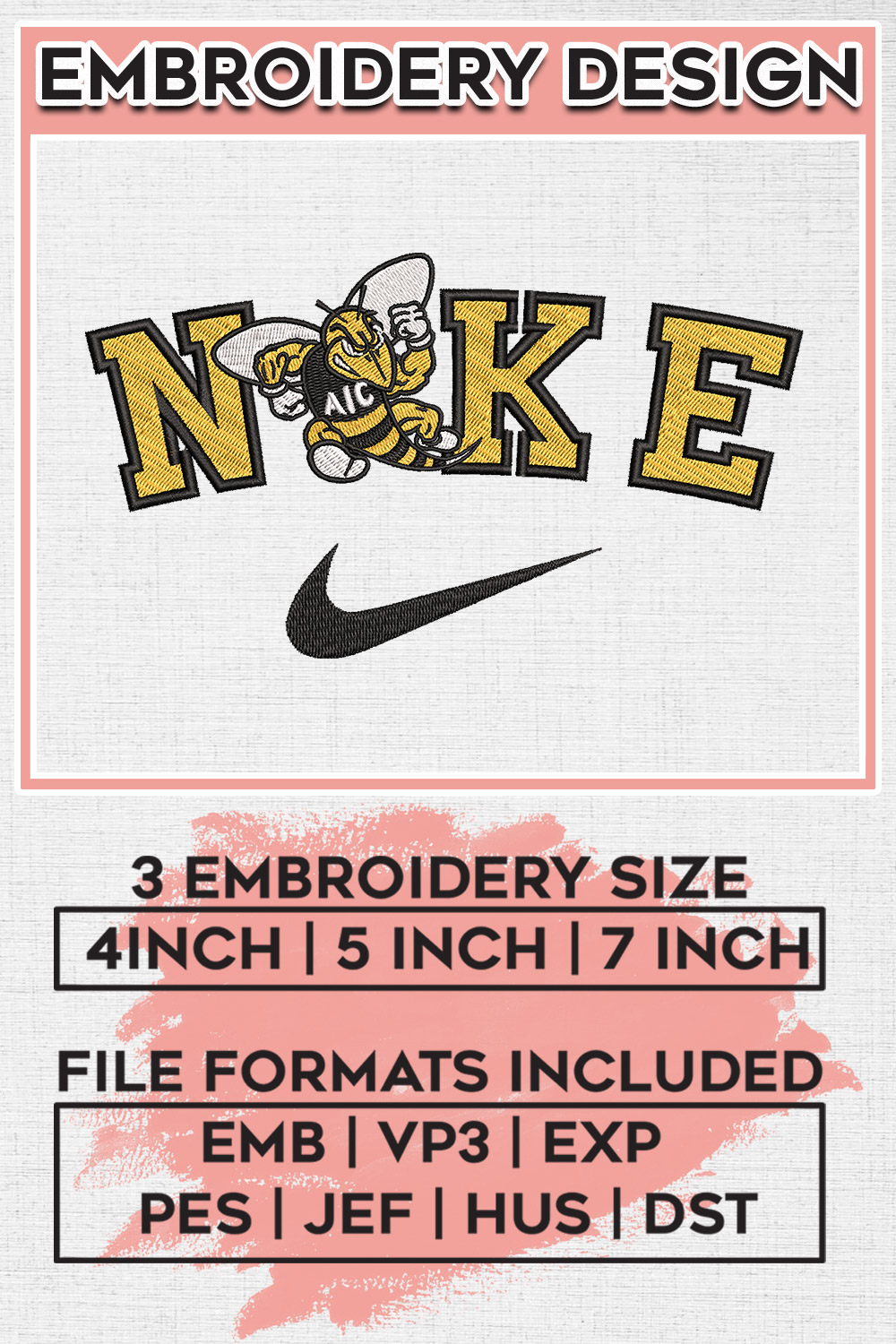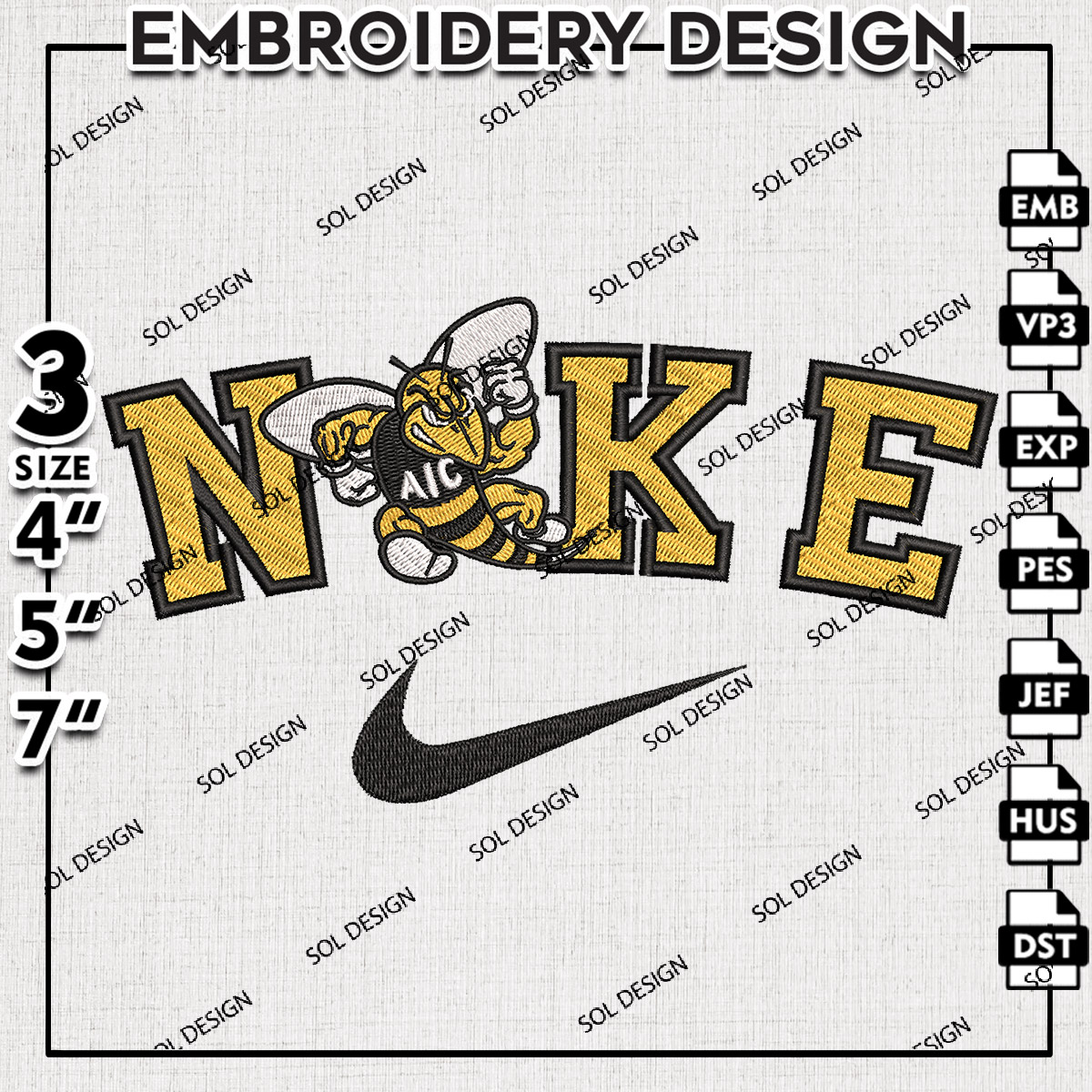 Nikee AIC Yellow Jackets Team Logo Embroidery Designs, NCAA AIC Yellow Jackets Machine Embroidery Files, NCAA Logo embroidery designs, Ncaa Yellow Jackets Logo, Digital Download