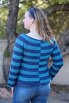 The Shoreline Sweater is a snuggly 2-color pullover that is worked flat from the top down using sport weight or light DK weight yarn.