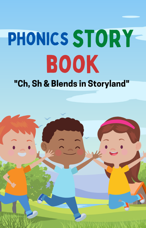 This delightful storybook is designed for young learners aged 5–7 years to build strong reading skills through fun and engaging stories. With a special focus on “ch” and “sh” sounds and common blends, children will enjoy simple tales filled with playful characters, colorful adventures, and easy-to-read words.