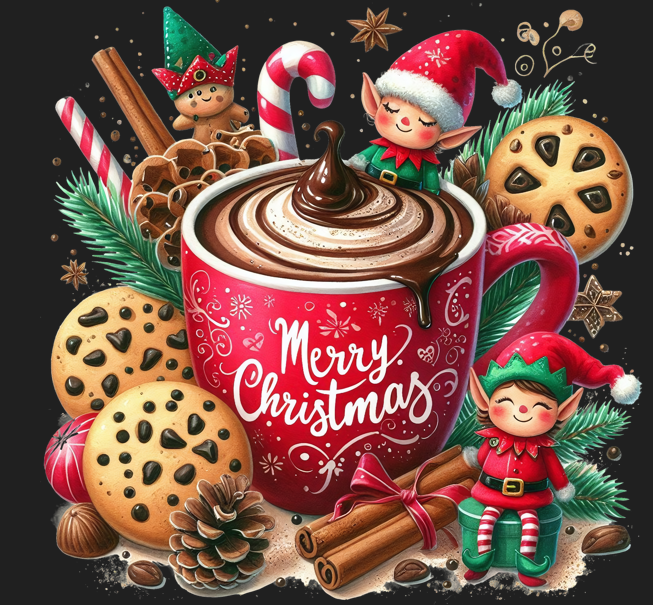 Wrap yourself in the warmth of luxury hot chocolate, sweet cookies, and festive fun with this beautiful, detailed design. Perfect for gifts, traditions, and products that make everyone feel the magic of the season!