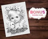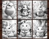 25 Easter Darlings Cute Bunny, Chicks & Eggs Coloring Page, Adults + kids- Instant Download - Grayscale Coloring Page - Gift, Printable PDF