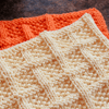 A square lattice pattern is used to knit this dishcloth. Ribbed columns criss-cross around seed stitch squares. This pattern will use the entire 80 yard skein of a solid colour Bernat Handicrafter Cotton. Pattern is written, not charted.