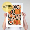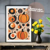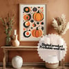 A digital file for printing; Halloween background pumpkins poster decoration party. Wall art fresh pumpkin in october, invitation card and wallpaper for phones