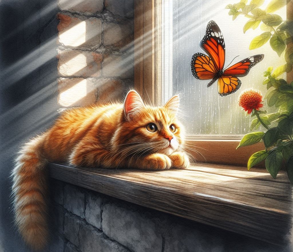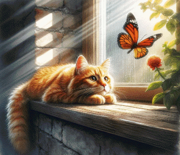 Ginger Cat Watching a Butterfly Cross Stitch Pattern PDF Instant Download
