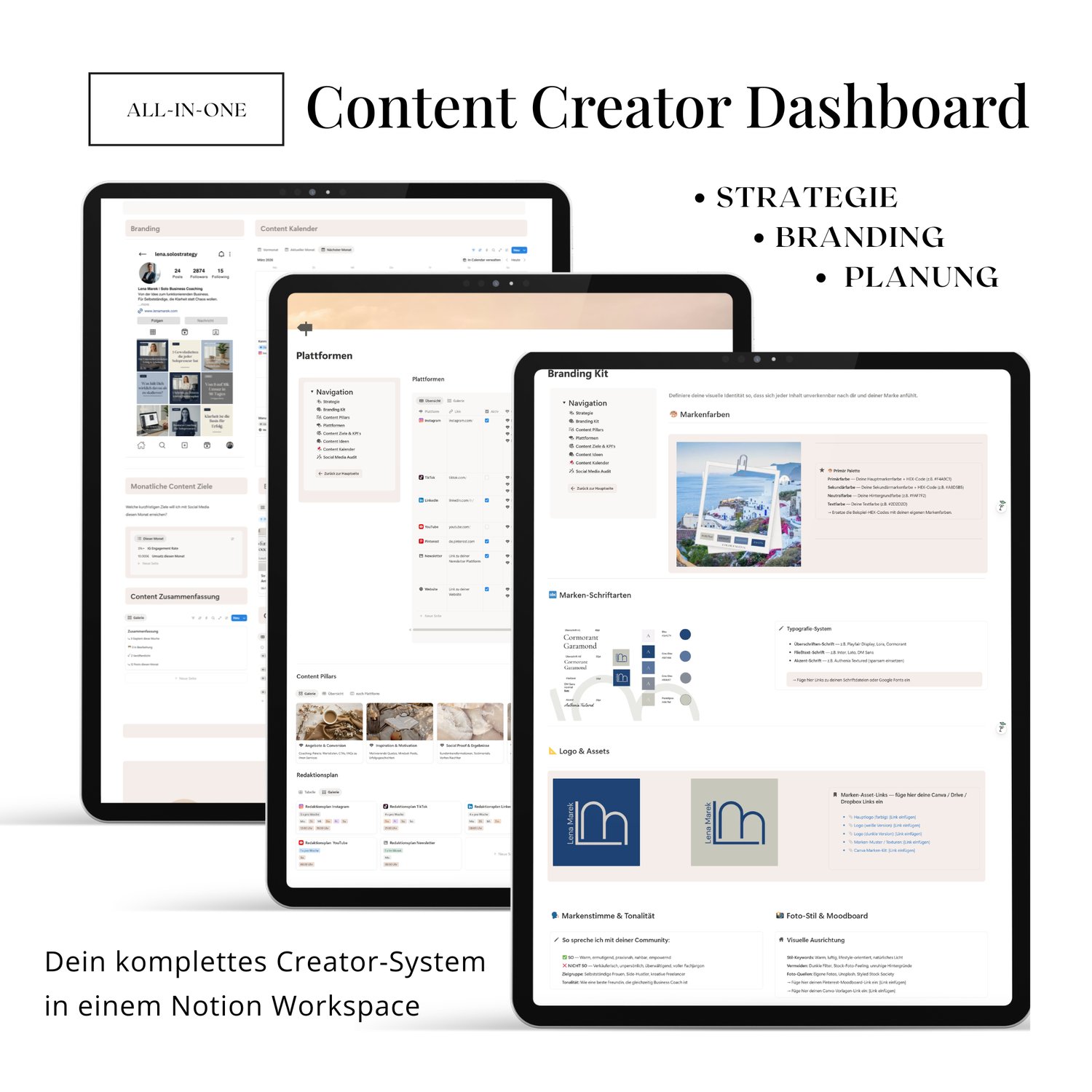 Vergiss Template-Dschungel, endlose Datenbanken und undurchsichtige Dashboards. Das Content Creator Dashboard fokussiert sich auf das, was du wirklich brauchst: Strategie, Content Kalender, KPIs, Plattform-Übersicht und Social Media Audit, alles auf einen Blick, kein Overkill.