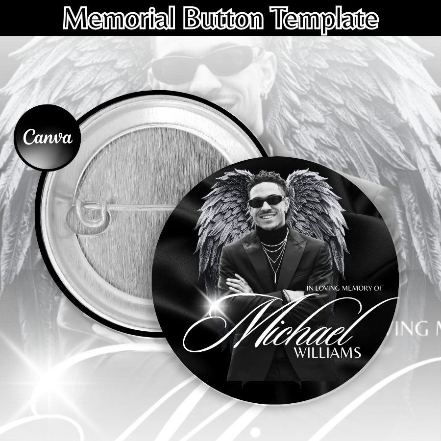 Design a simple yet beautiful keepsake with this memorial button template to cherish your loved one’s memory.