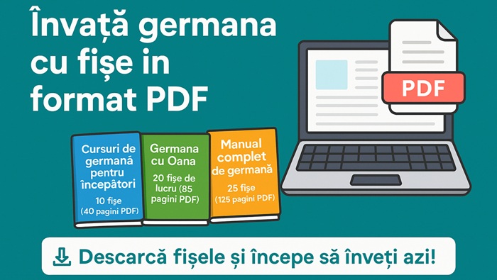 Cursul complet de germana oferit de aplicatia 4DD.ro - Germana cu Oana, 16 fisiere in format PDF, absolut tot ce ai nevoie pentru a invata germana de la A1.1 pana la nivelul B2.2, garantam ca vei reusi sa vorbesti cu "nemtii" daca vei invata cel putin o ora pe zi cu noi! COD REDUCRERE 78% - > OANA78