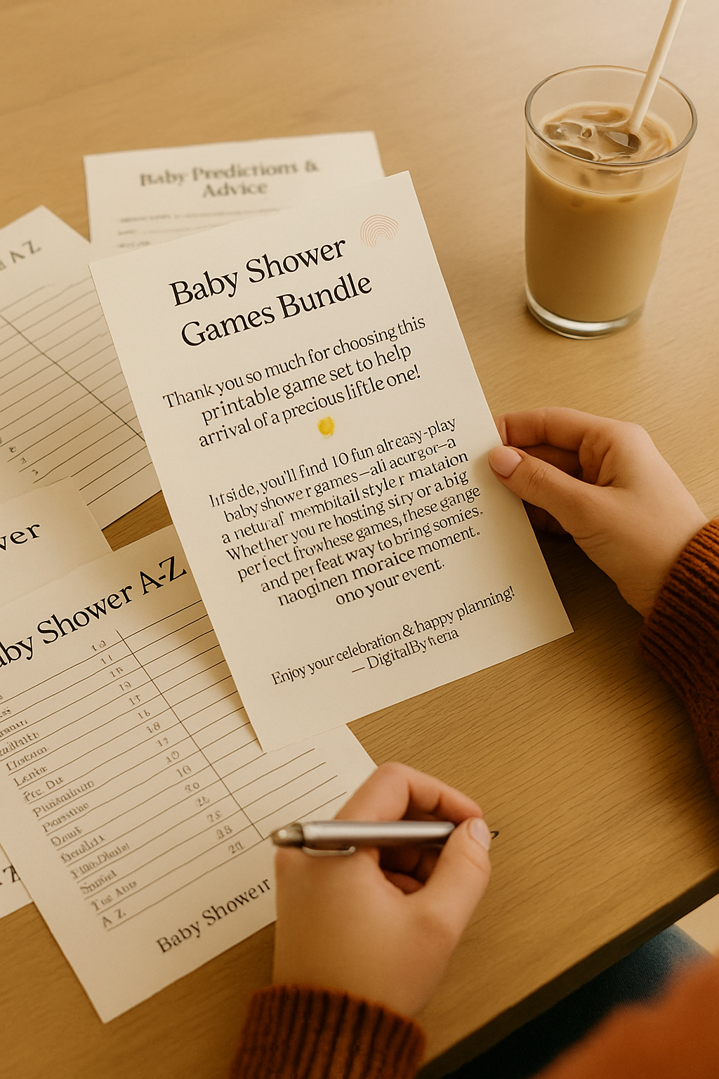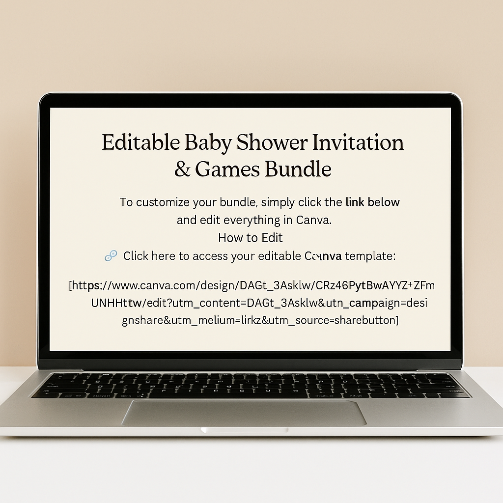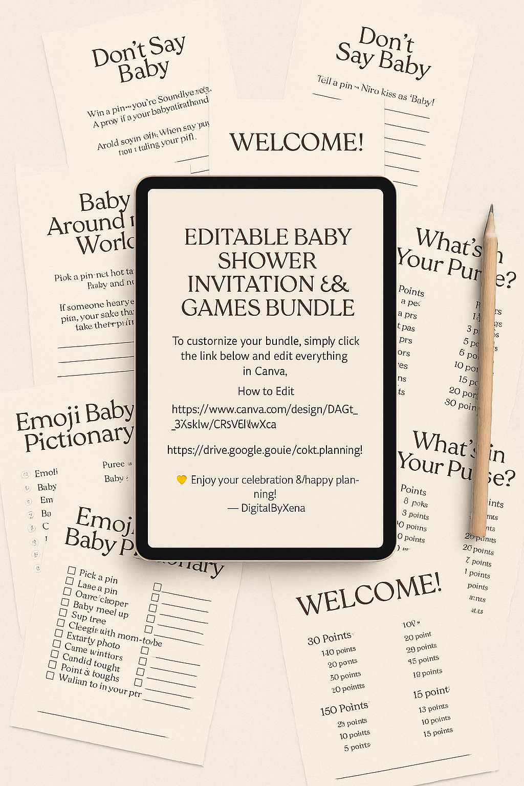 Editable Baby Shower Bundle – 36 Canva Templates (Games, Invitations, Thank You Cards)